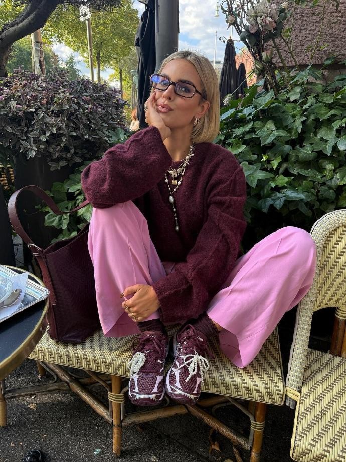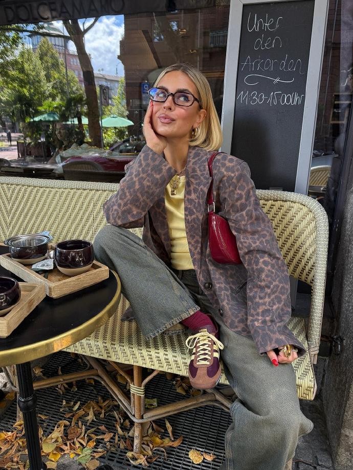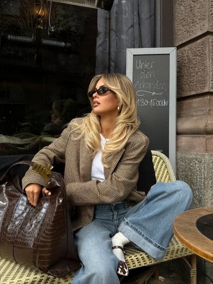 除了搭配逻辑,julia.kammerer 的美拉德穿搭还藏着很多实用小细节。她很懂利用配饰提升造型完整度,比如用棕色皮质贝雷帽呼应鞋子,用焦糖色腋下包平衡全身色彩,或者用一条细款金色项链打破同色系的单调,这些小配饰不会抢夺主体穿搭的风头,却能让整体造型更有记忆点。同时她也很注重材质的碰撞,比如针织的柔软搭配牛仔的硬朗,麂皮的细腻搭配羊毛的挺括,不同材质的融合让美拉德穿搭更有质感,避免了单一材质带来的沉闷感。