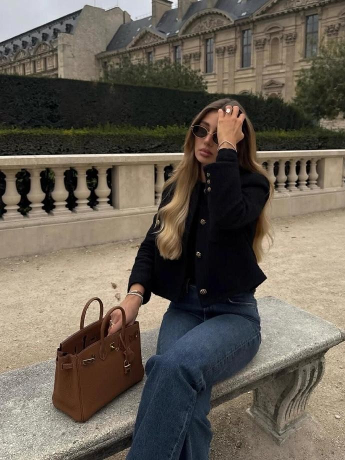 今天给大家介绍的是来自法国的ins时尚博主marielouduvillier,她以其独特的法式优雅与随性慵懒并存的穿搭风格,成为了许多时尚爱好者追捧的对象。她的穿搭没有繁复的装饰和夸张的设计,却总能在简约中透露出高级感,无论是日常出街还是特殊场合,都能给人带来满满的灵感。想要get她的同款穿搭精髓,首先要抓住的就是“简约不简单”这一核心。marielouduvillier的衣柜里似乎总有那么几件基础款,但通过巧妙的搭配,却能演绎出千变万化的风格。比如一件简单的白色衬衫,她可以搭配高腰直筒牛仔裤,再外搭一件驼色针织开衫,脚踩一双小白鞋,整体造型清爽又利落,充满了法式少女的活力;也可以将衬衫下摆塞进黑色西装裤里,配上一双细跟高跟鞋和一个简约的腋下包,瞬间变身职场通勤风,优雅又干练。这种基础款的灵活运用,正是她穿搭的一大亮点,也让普通人更容易模仿和借鉴。