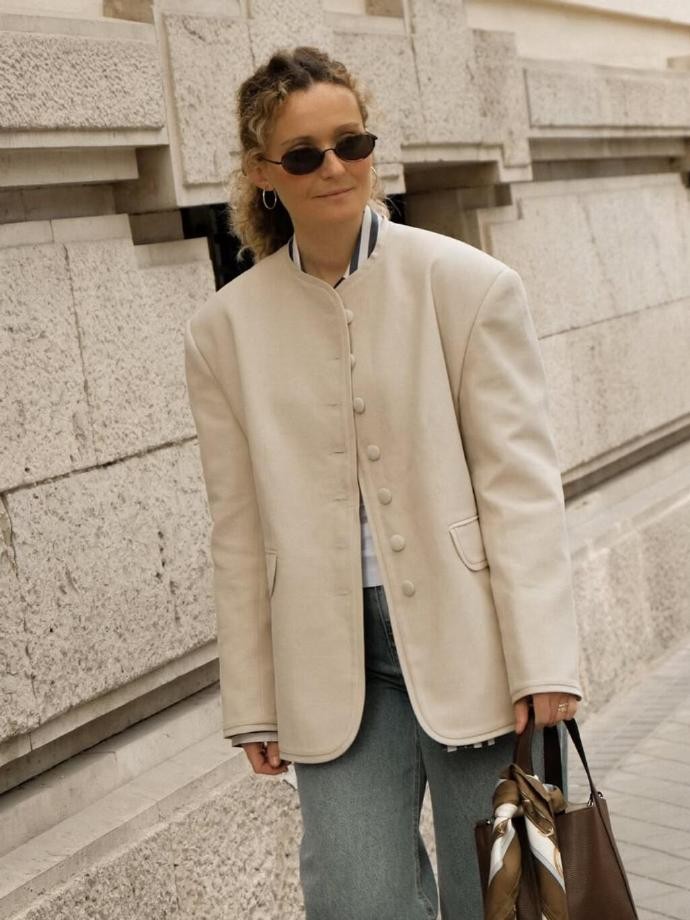 除了搭配思路,jealizee 对单品的选择也很有参考价值,她选的衣服大多版型利落、材质有质感,比如垂坠感好的西装、软糯的羊毛针织衫、透气的棉麻面料,这些材质不仅穿着舒服,还能让基础款摆脱廉价感。而且她很懂扬长避短,小个子时会选高腰设计的下装,搭配短款上衣或把上衣塞进裤子里,悄悄拉高腰线;微胖身材则偏爱直筒、H 型的版型,避开过于紧身的款式,用宽松度恰到好处的衣服修饰身形。配饰方面,她从不贪多,一条细项链、一对小巧的耳环、一个简约的腋下包就足够,这些小细节既能丰富造型层次,又不会显得杂乱,完美契合了 “松弛感” 的穿搭内核。