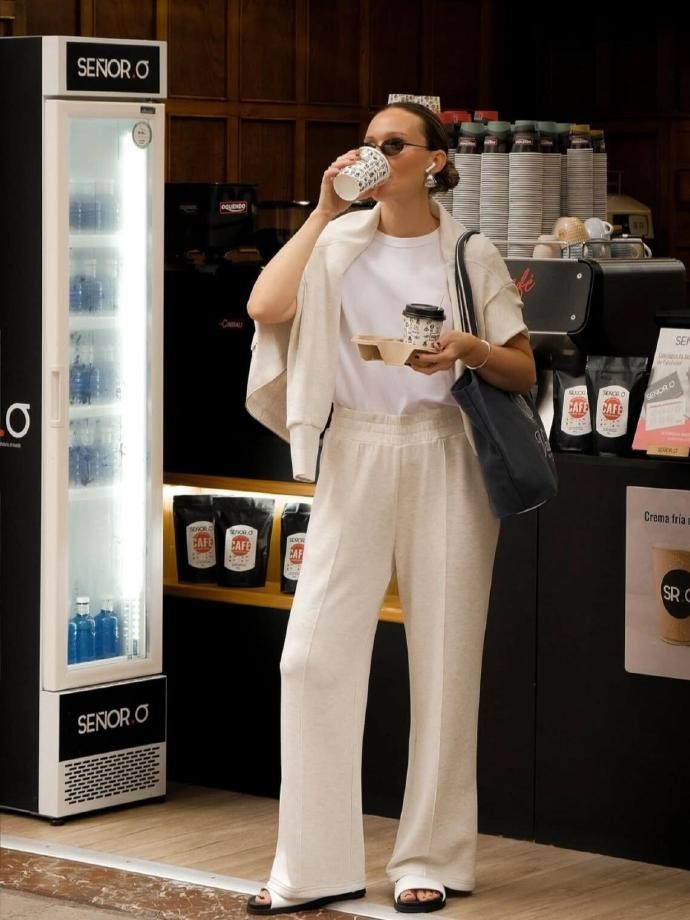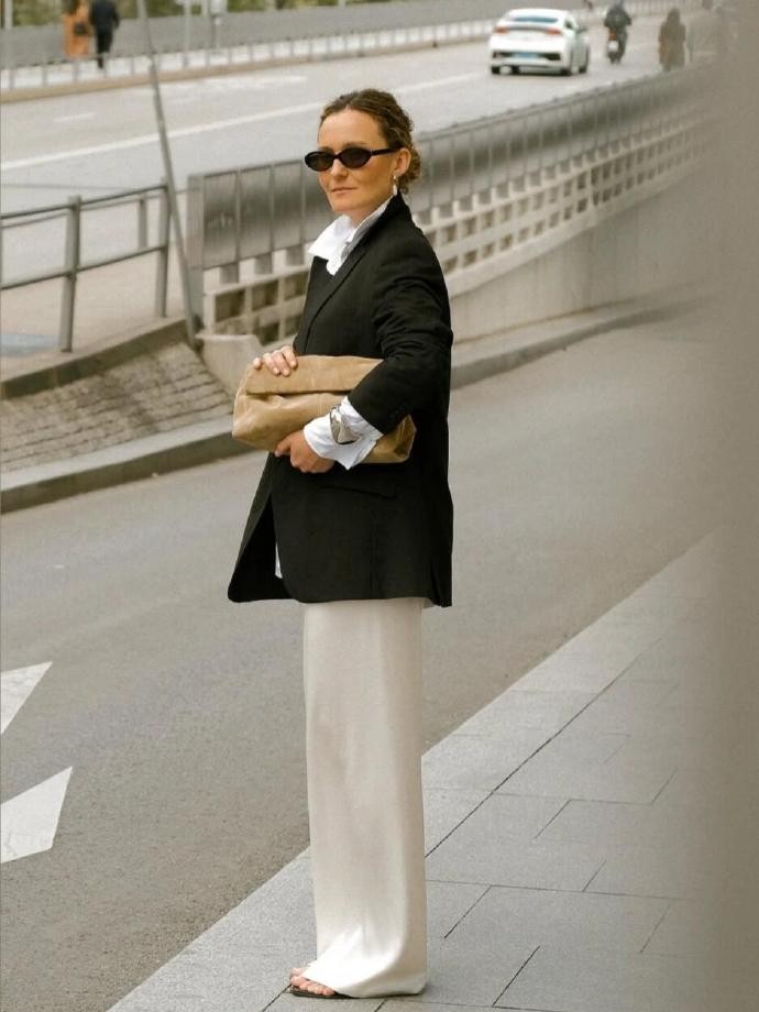 除了搭配思路,jealizee 对单品的选择也很有参考价值,她选的衣服大多版型利落、材质有质感,比如垂坠感好的西装、软糯的羊毛针织衫、透气的棉麻面料,这些材质不仅穿着舒服,还能让基础款摆脱廉价感。而且她很懂扬长避短,小个子时会选高腰设计的下装,搭配短款上衣或把上衣塞进裤子里,悄悄拉高腰线;微胖身材则偏爱直筒、H 型的版型,避开过于紧身的款式,用宽松度恰到好处的衣服修饰身形。配饰方面,她从不贪多,一条细项链、一对小巧的耳环、一个简约的腋下包就足够,这些小细节既能丰富造型层次,又不会显得杂乱,完美契合了 “松弛感” 的穿搭内核。