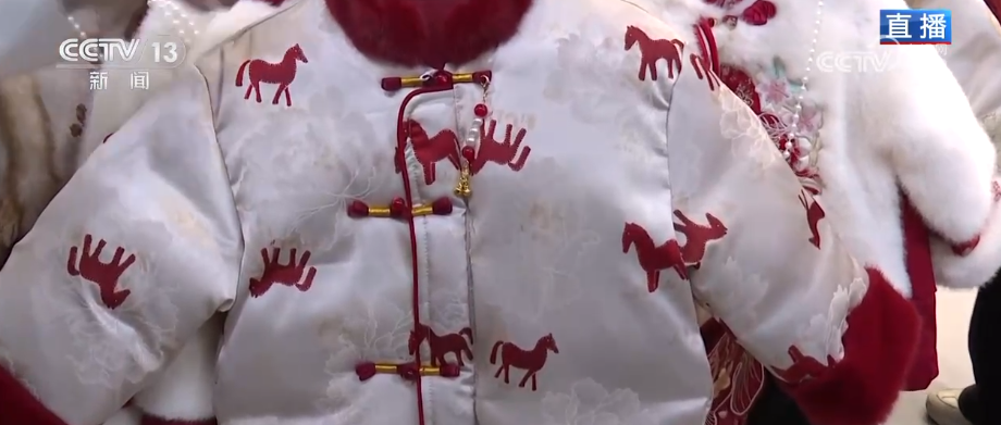 新年新气象,这几天这里的散客越来越多,又逢周末,不少家长带着孩子来这里挑选新衣服。 “新中式”拜年服走俏 马年主题配饰热销