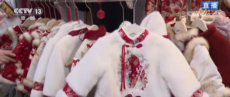 2026年哪些童装款式更受欢迎?“新中式”肯定榜上有名,像这样带有国风元素的拜年服就颇受欢迎。比如小旗袍、棉服等,盘扣精致,还融入了马年主题元素。有的还搭配同系列小包包、小手套,又可爱又有特色。翻开内衬,发现基本都升级了加棉或羽绒内里,既好看又保暖。像这样的“新中式”童装拜年服,不少老板表示好几款已经卖断货。除了服装,还有很多配饰像围巾、帽子、手套、袜子等在这里可以“一站式”配齐。带有小马元素的围巾、帽子就很受欢迎,上市两个月卖出超过15000件。 外摆区助力清仓 市场迎来“岁末抢购”