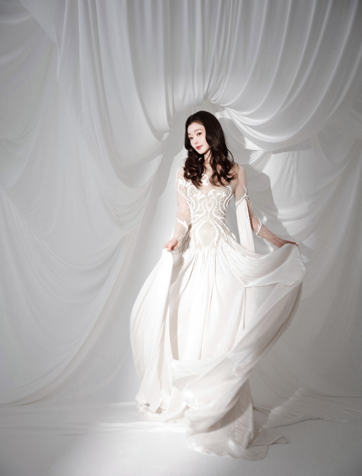 当白色纱幔在光影里漾开层层褶皱,宋轶便站在这虚实交织的景致中,成了时光里最温柔的注脚。她身着一袭缀满刺绣的白色长裙,薄纱与钉珠在肌肤旁流转着细碎的光,仿佛将月光纺成了丝线,密密地织进了裙裾的纹理里。微卷的长发垂落肩头,发尾的弧度轻扫过蕾丝袖口,与扬起的裙摆形成温柔的呼应。她的每一个眼神、每一个姿态,都在纱幔的光影里沉淀出静谧的美感,仿佛从画中走来,将优雅二字演绎得淋漓尽致。