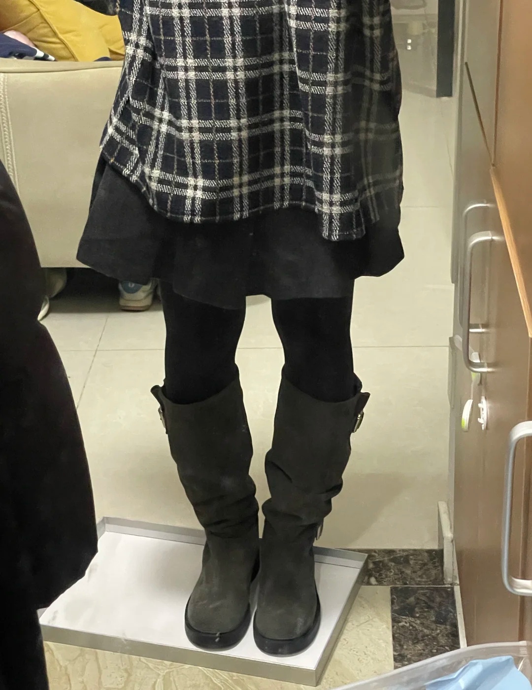 而且无论你怎么搭配都有一种土气的感觉,其实高筒靴对身材的要求还是挺高的,我们普通人很少有模特的大长腿,