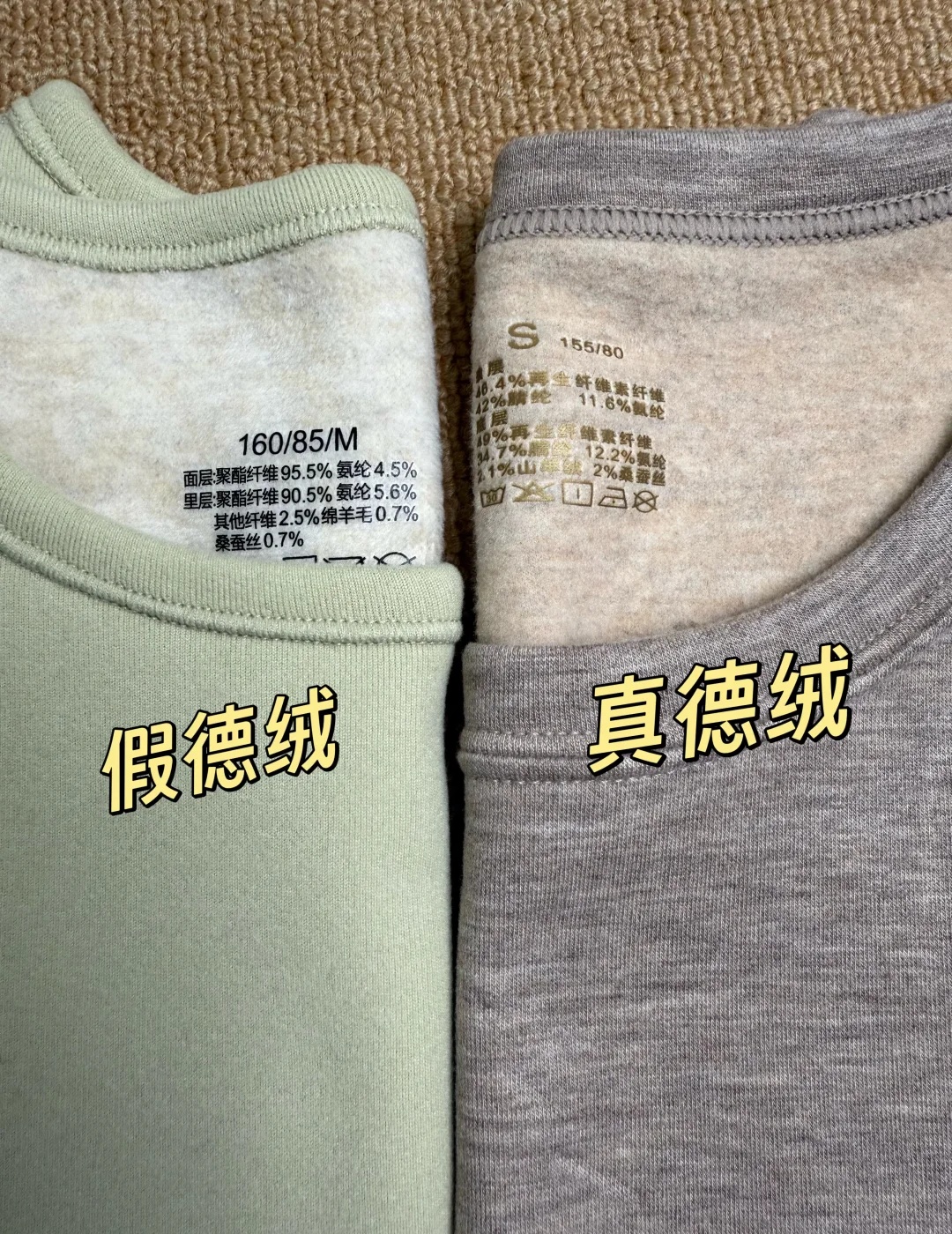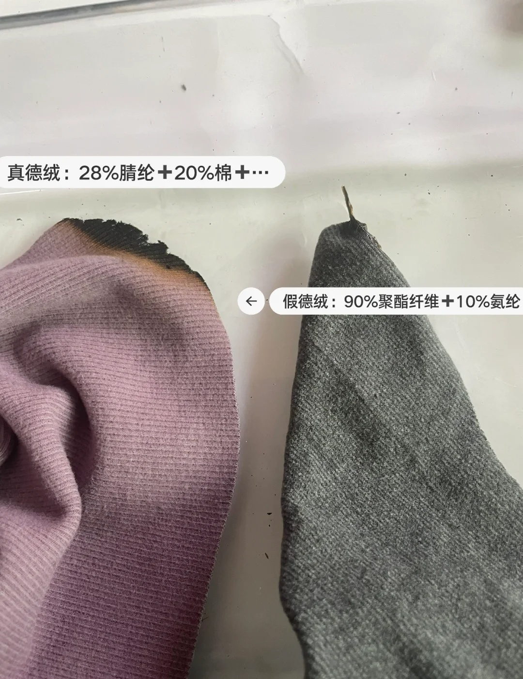 而且保暖性也很好,但是一些劣质的德绒面料,为了降低成本,以次充好,使用的是聚酯纤维代替的。看一下成分。如果是100%的聚酯纤维,或者是95%以上,这样的德绒就是假德绒,