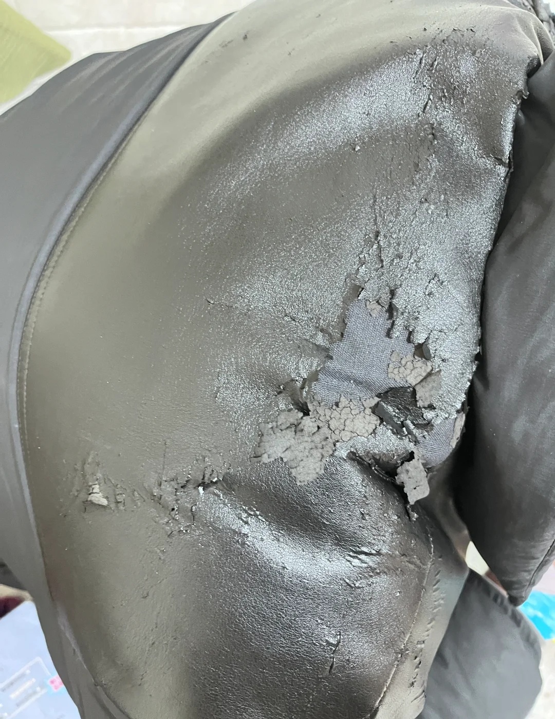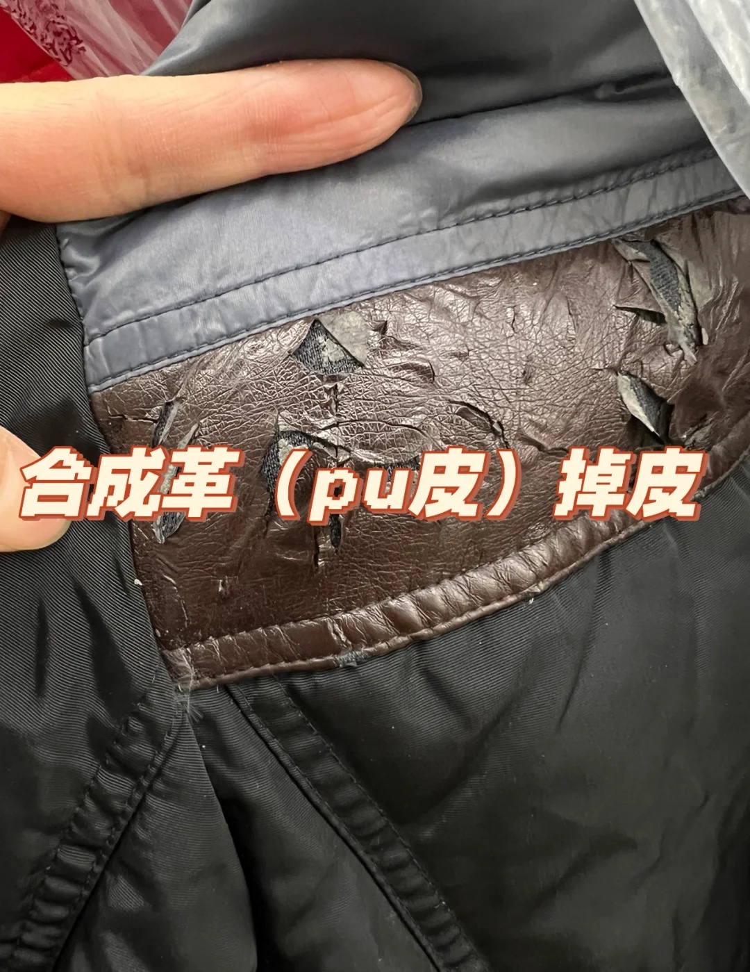 然后就会出现这样的情况,另外这种衣服不能放,放置了一段时间之后再穿出来,同样也会掉渣,穿在身上,整个一个大型社死现场。