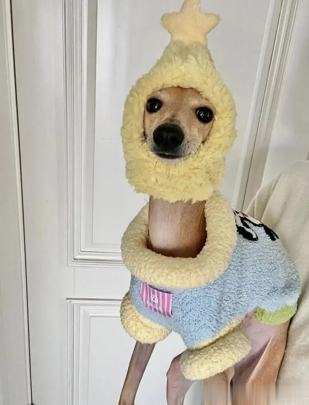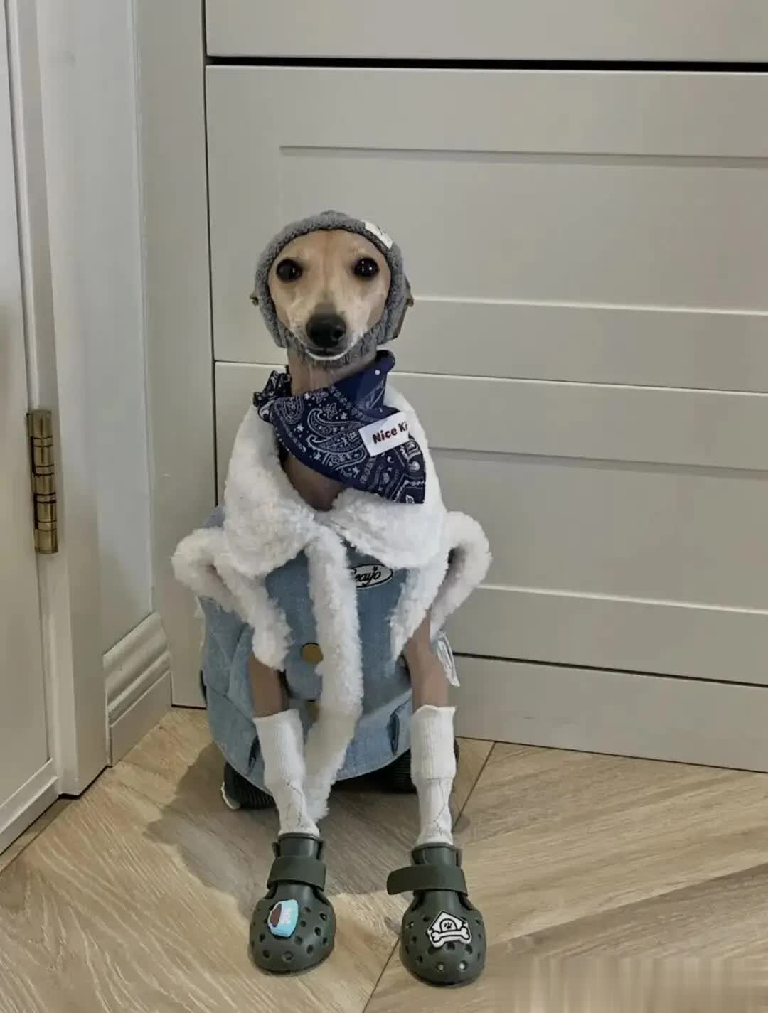 这顶帽子不仅起到了保暖的作用,还与身上的衣服和鞋子相得益彰,共同打造出狗狗的时尚造型。