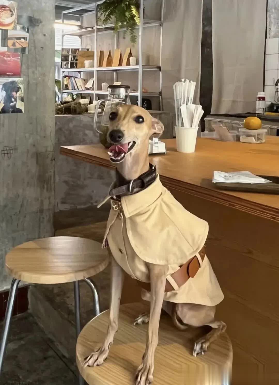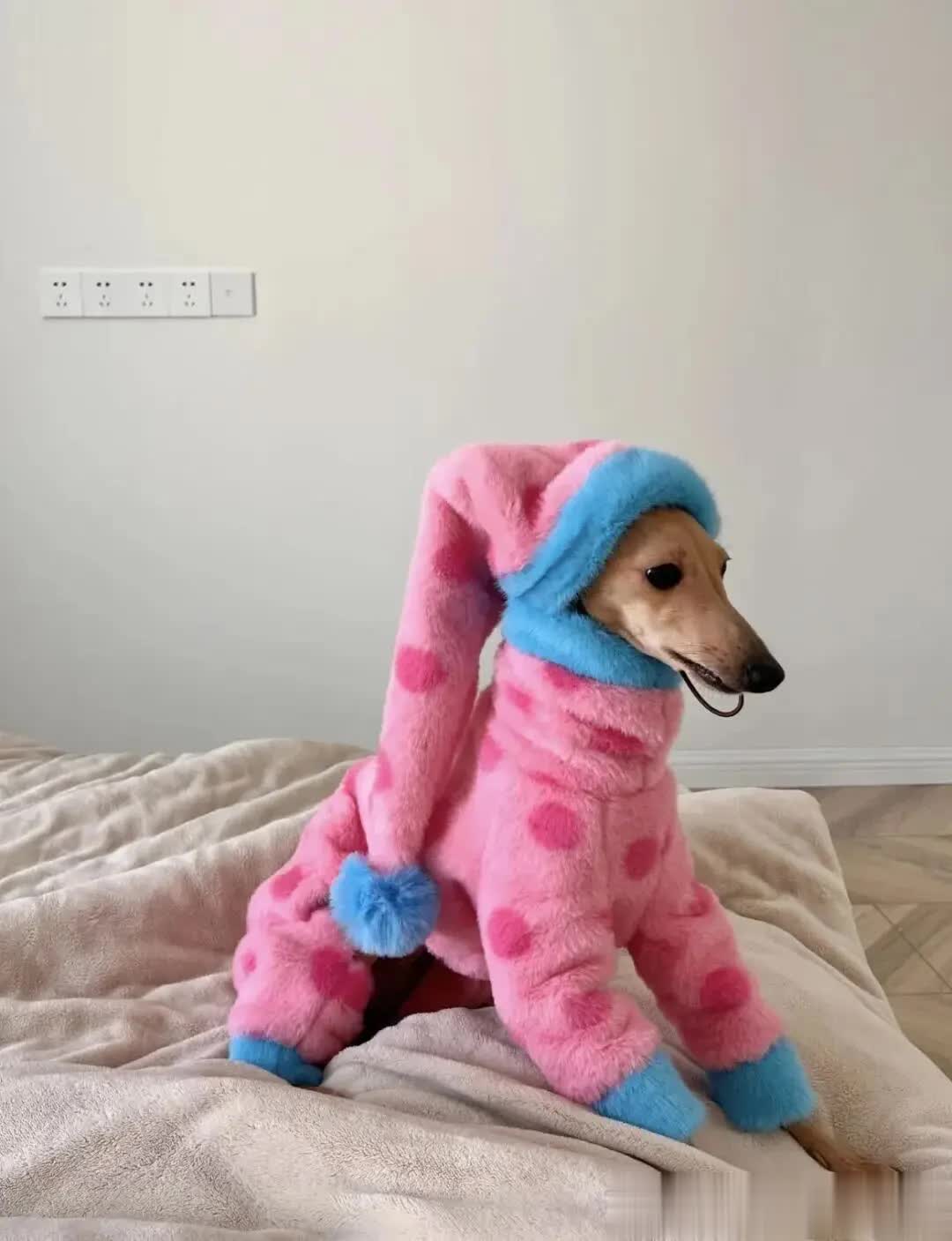 衣服的材质柔软舒适,紧密贴合狗狗的身形,将狗狗优美的线条完美勾勒出来,仿佛是为它量身定制的艺术品。