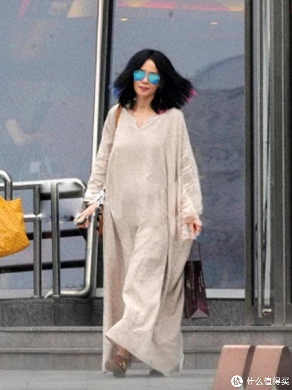 这套浅米色亚麻长裙,从版型到材质都精准踩中了王菲“麻袋风”的核心精髓。不同于市面上追求曲线感的女性化裙装,它采用了超宽松的长袍式剪裁,完全脱离了“收腰显曲线”的刻板审美逻辑,长袖设计遮住了手臂线条,及踝长度的裙摆顺着身形自然垂落,没有多余的分割与修饰,却在走动间形成流畅的垂坠感,模糊了身材的具体轮廓,又自带“不被定义”的随性气场。