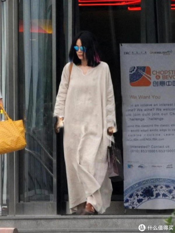 不同于大红大紫,这一条连衣裙用浅米色的底色弱化了亚麻的粗粝,增添了柔和的氛围,让整套造型在松弛中多了几分温柔。这种材质本身就带着“反精致”的属性,与王菲佛系淡然的性格完美契合,就像她本人一样,不刻意讨好,不强行融入,却自带无法忽视的存在感。难怪网友调侃:“别人穿亚麻像麻袋,王菲穿麻袋像高定”!