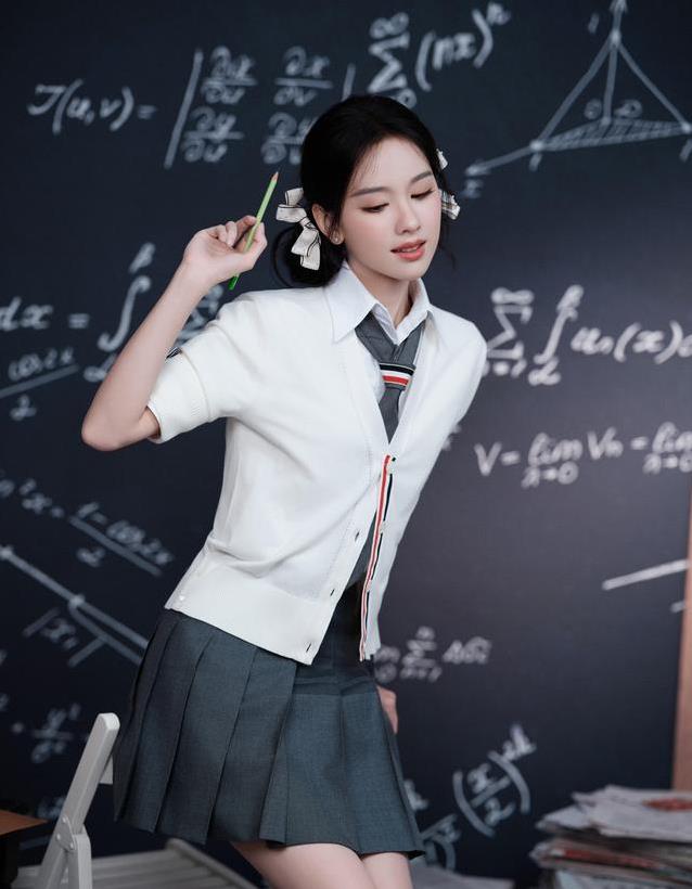 日常休闲的时候,她也照样能穿出少女的感觉。一件带点小印花的T恤,搭一条工装背带裤,本来有点硬朗的背带裤在她身上反而显得俏皮。清冷的气质被中和了,多了几分邻家女孩的娇憨。换成浅色卫衣配运动束脚裤,整套衣服轻松又利落。高高扎起马尾,脖子线条露出来,五官显得格外精致。走动之间带着一点跳跃的节奏,谁看了都忍不住想,这样的女孩是不是每天上学路上都会哼歌。