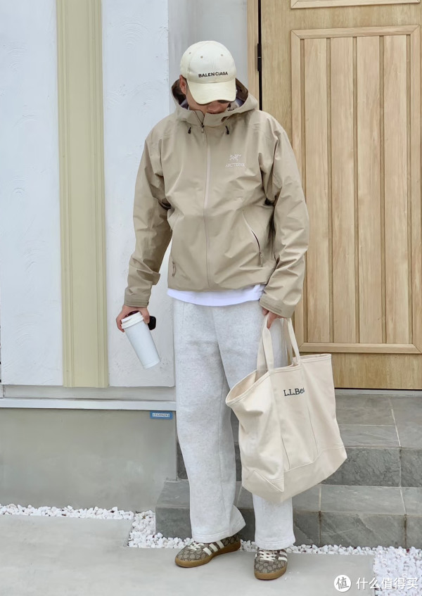 “轻户外”风格穿搭的重点在于,不能穿得像个去爬山越野的,也不能打扮得像去上班,整体造型要有生活感,适合日常穿着,时尚松弛。比如在“始祖鸟冲锋衣+运动裤”的基础上,上半身“内长外短”露衣角边丰富层次感,增加棒球帽、帆布包配饰作为点缀,穿搭日常有生活感,时髦得毫不费力!