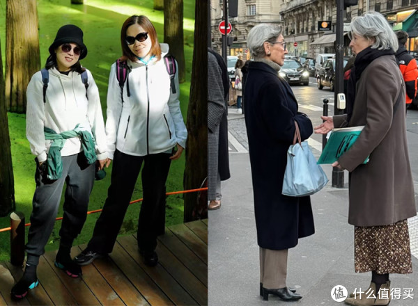 以中国大妈和法国女人为例,她们在穿衣打扮上差别肉眼可见,看完对比图之后,你就会明白:为什么我劝你“别穿冲锋衣,多穿大衣”了!