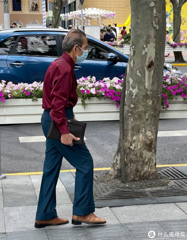 如果是平时穿衣打扮偏正式、绅士的老年男性,则可以像上海爷爷一样选择手拿包,信封式的包型设计,拿在手上非常轻便,完全不喧宾夺主。以真皮材质为首选,如牛皮、羊皮,或是上档次的鳄鱼皮,主要用于放置一些贵重物品,证件、手机等,搭配正装造型更显气质。