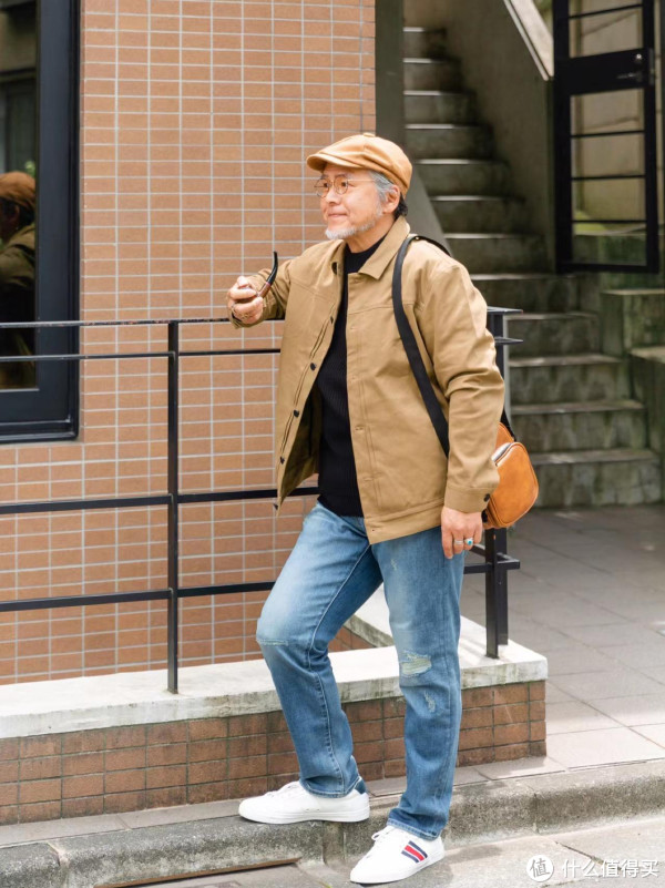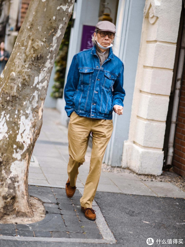 卡其色在六七十岁男人的穿搭中也非常实用,作为大地色系中的一种,暖色调中的基础色,对于肤色的要求不高,包容性也非常强。而且不同明度的卡其色呈现出来的效果也不一样,浅卡其色温暖干净,深卡其色复古高级,与六七十岁男人沉稳的气质相得益彰。