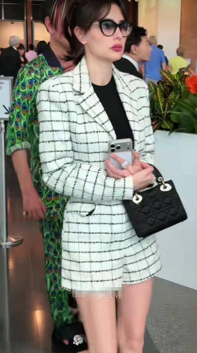 而他的妻子黛博拉扎着高马尾,内穿一件黑色上衣,搭配白色套装,脚穿白色袜子和鞋子,拎着一个黑色小包包,身材依然苗条,五官精致,看起来还是很漂亮。