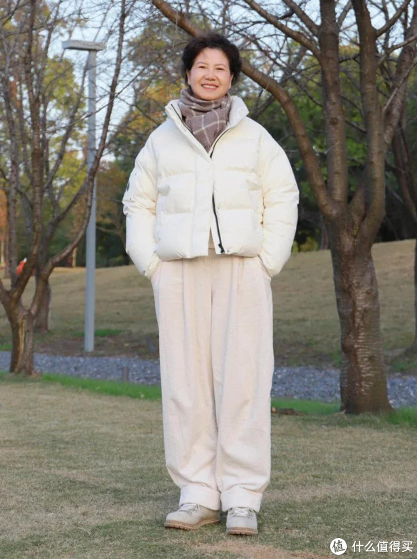 “衣松裤宽”的搭配方式,非常适合身材偏微胖的中年女性,利用略微宽松的服装,来掩饰身上肉感,起到遮肉显瘦效果。需要注意的是,羽绒服长度不宜过长,尽量以齐腰短款为主,这样搭配宽腿裤才不会影响整体身材塑形。