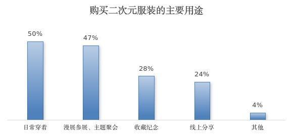 市消保委还指出,以前提到二次元服装,大家第一反应都是漫展上的华丽Cos服,现在可不一样了。问卷显示,在二次元消费群体里,有一半的小伙伴已经把二次元服装焊在身上,让“次元风”妥妥吹进了生活的每一个角落。当然,漫展聚会依然是二次元服装的重要战场,47%的消费者会为了这类场合精心准备。