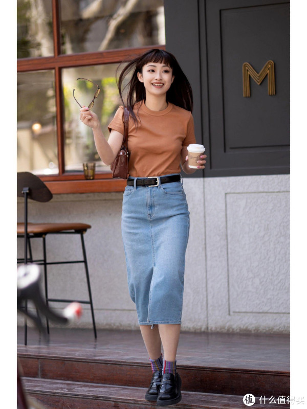 小个子就不推荐连体款式的及踝裙了,可以尝试A字型半身及踝裙,以牛仔面料为主,利用面料材质的特殊性,挺阔的版型刚好可以掩饰身高短板,并从视觉上也能提拉整体身型。结合高腰设计,明示腰线位置,哪怕身高低于160也能驾驭。