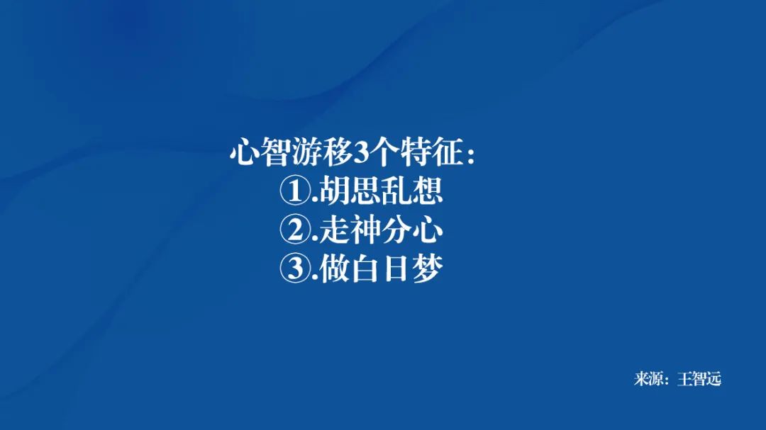 总之,无论是在有目标、受控的任务场景、还是静息状态下,心智游移都可能闯入你的意识中去,同时它还能随着任务进行加工,成为意识流重要组成部分。