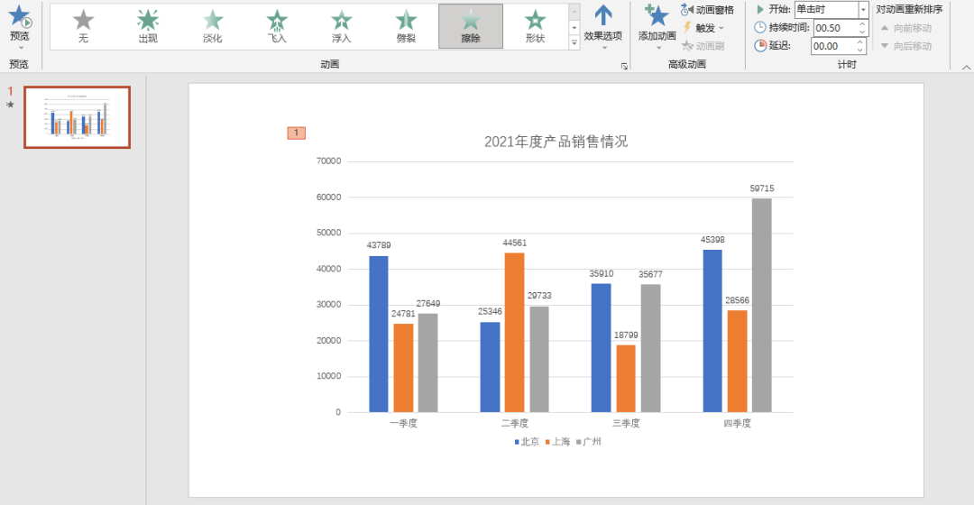 完成图表制作后,接下来我们就可以添加动画效果,让图表动起来了。