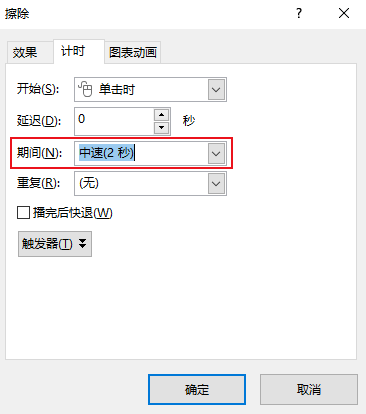接下来依次点击每个图表动画右侧的下拉箭头,将擦除动画的演示时间修改为2秒。
