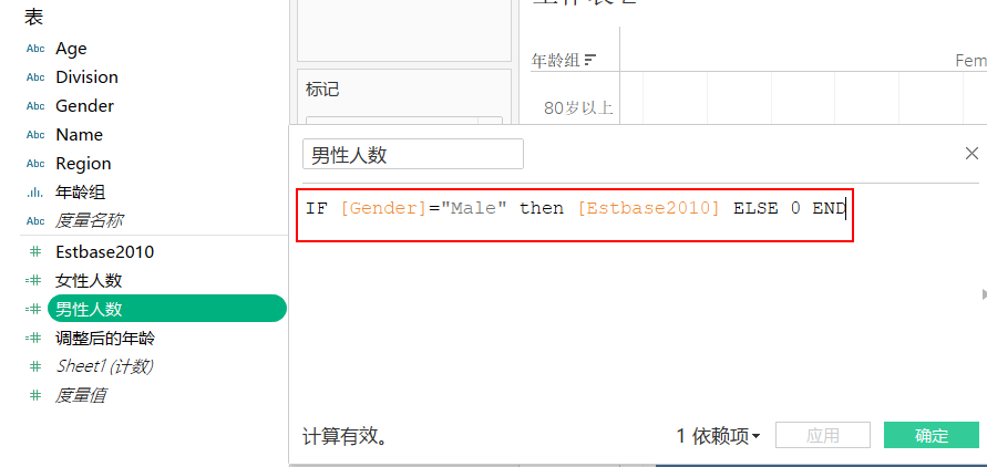 如果这个人数不是一个整体,男性的人数是一个字段列,女性的人数又是一个单独的列的话,这样倒序时就互不影响了。所以,创建两个计算字段,男性人数与女性人数,男性人数中凡是性别为女的人数都设置为0,女性人数中凡是性别为男的人数都设置为0。