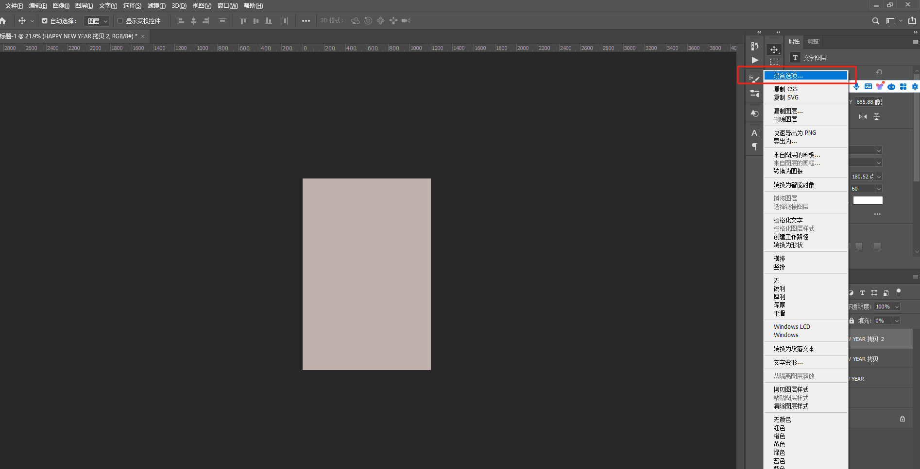 4、分别选中3个文字图层,鼠标右击,选择【混合选项】,对其分别添加效果