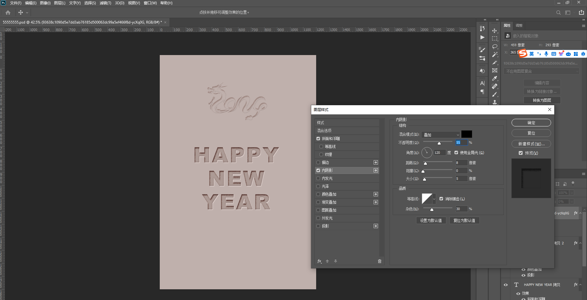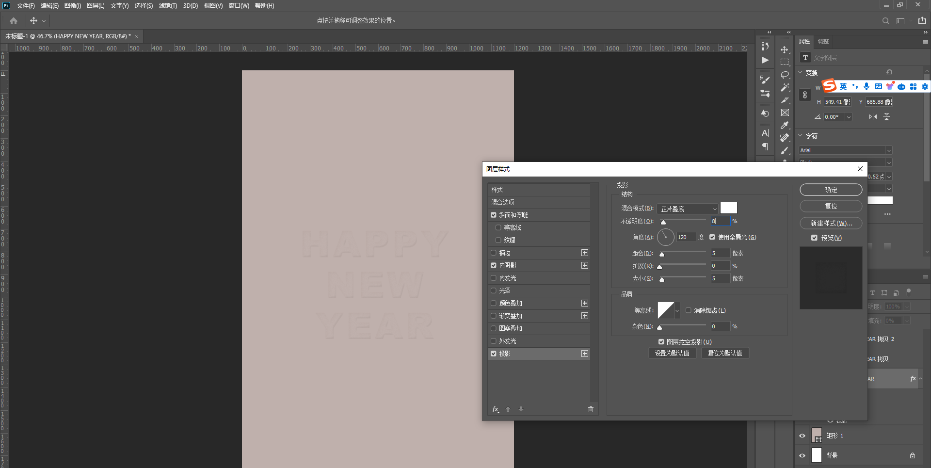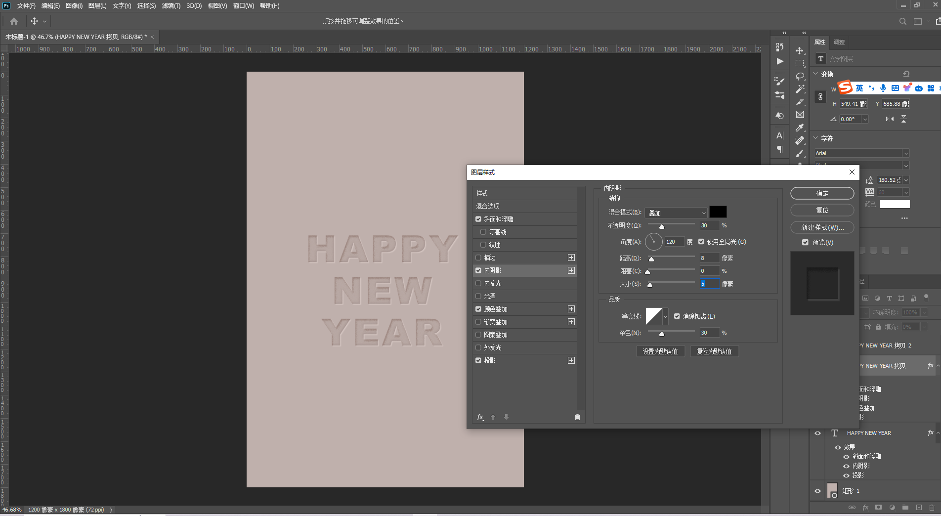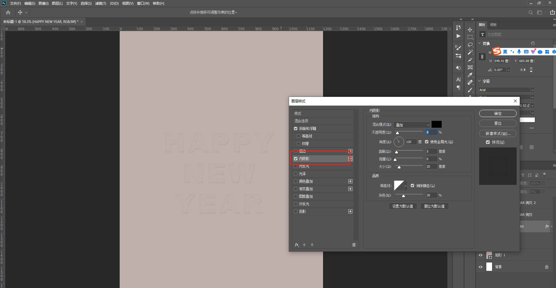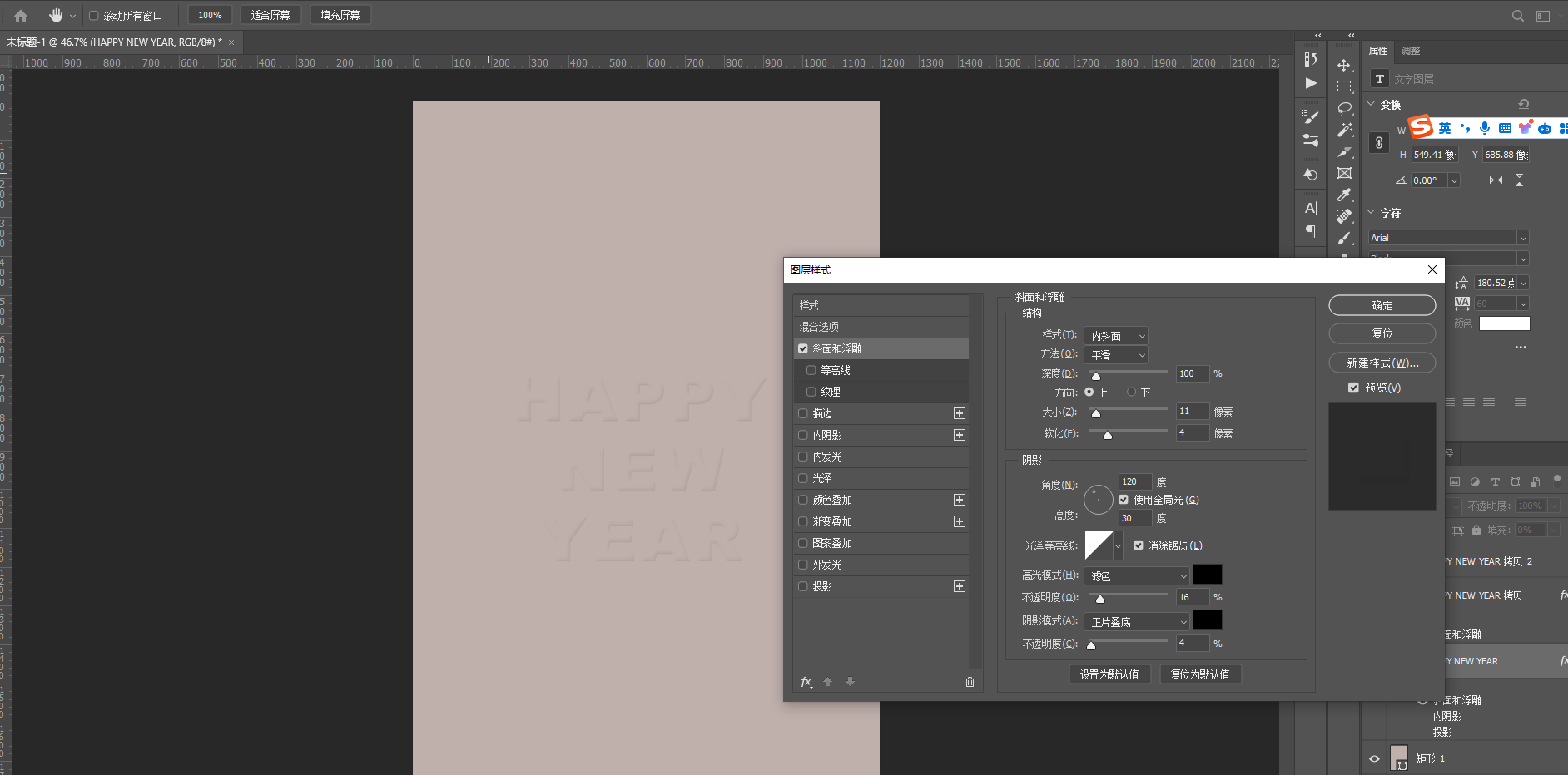 8、右击图案图层,选择【混合选项】添加以下效果 ,数值和前面文字的差距不是很大
