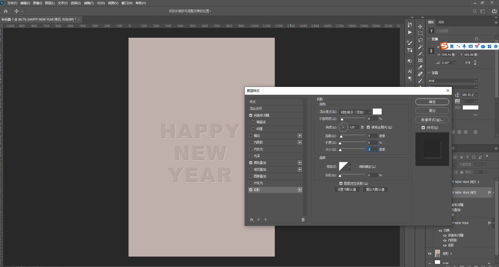 5、对文字1效果添加参数如下: