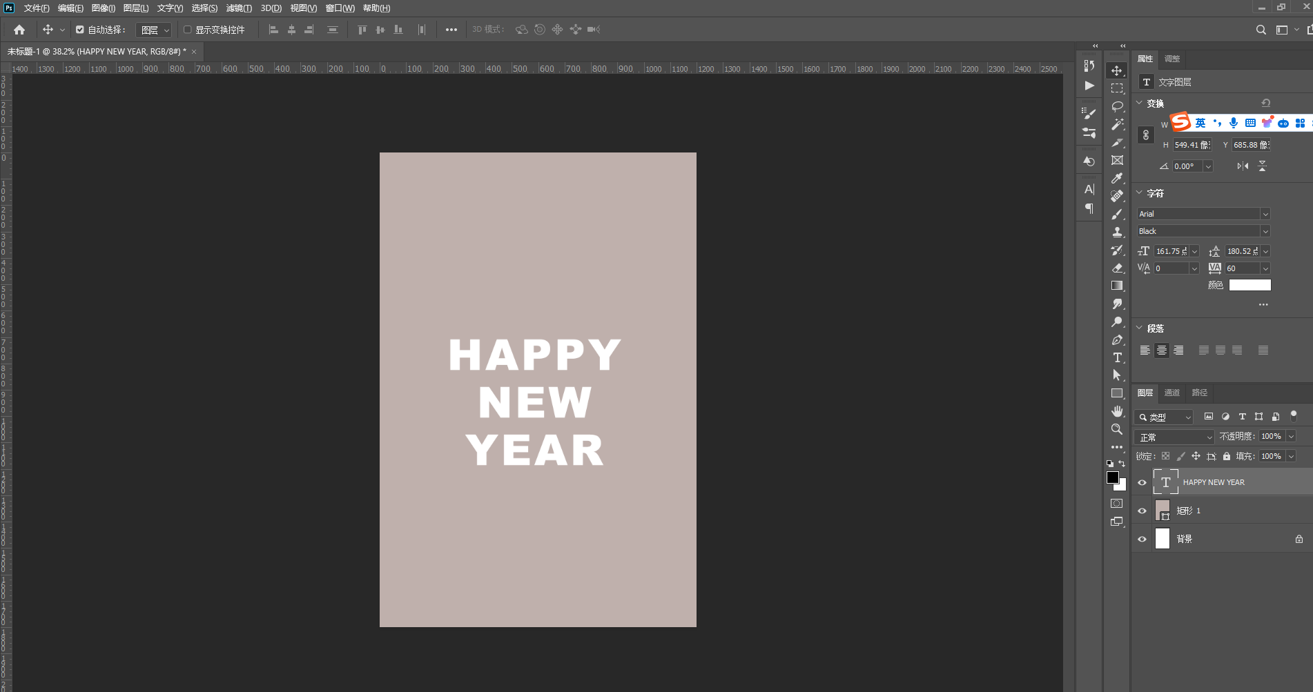 1、新建图层,填充喜欢的背景色,并输入文字
