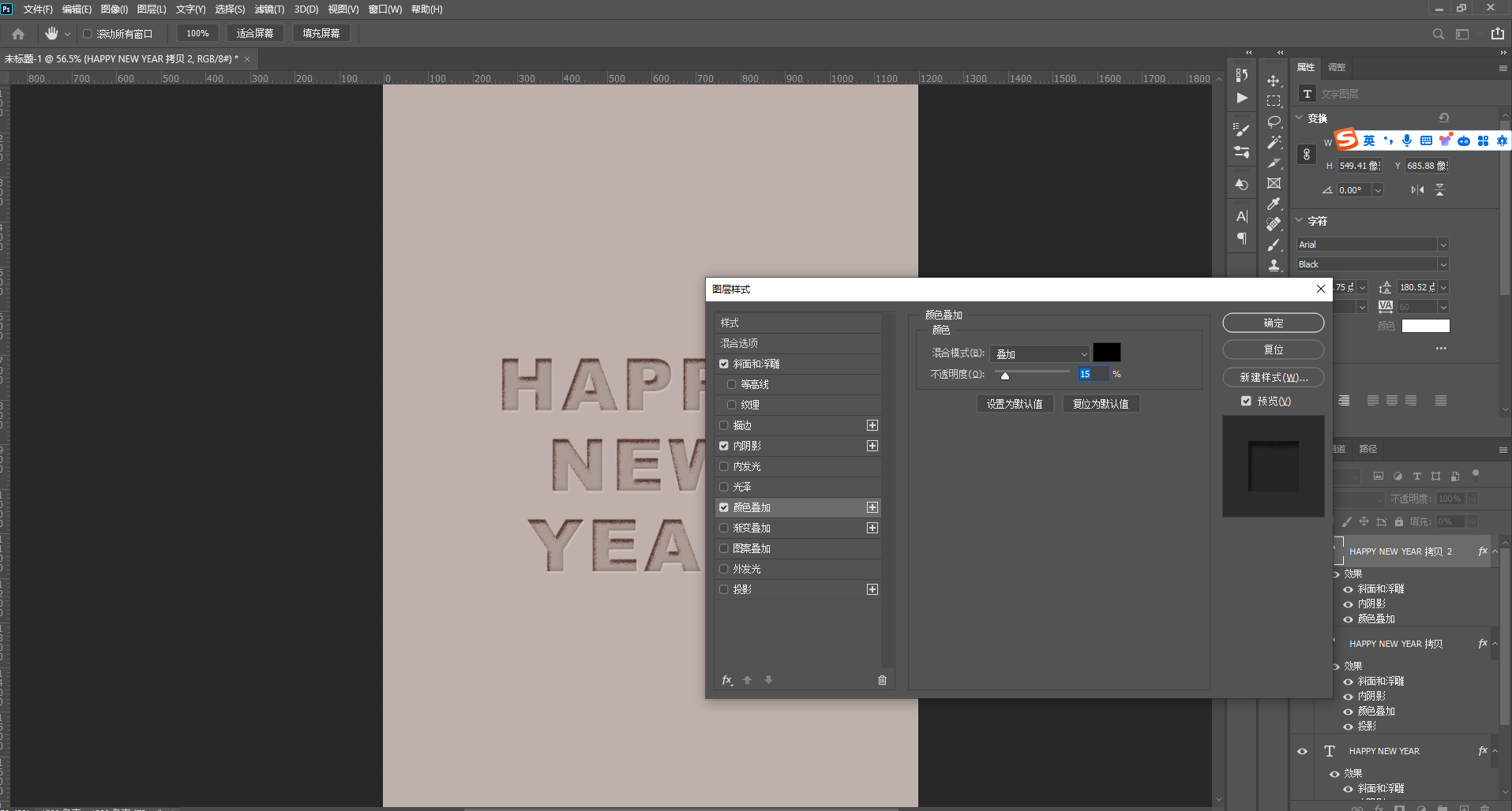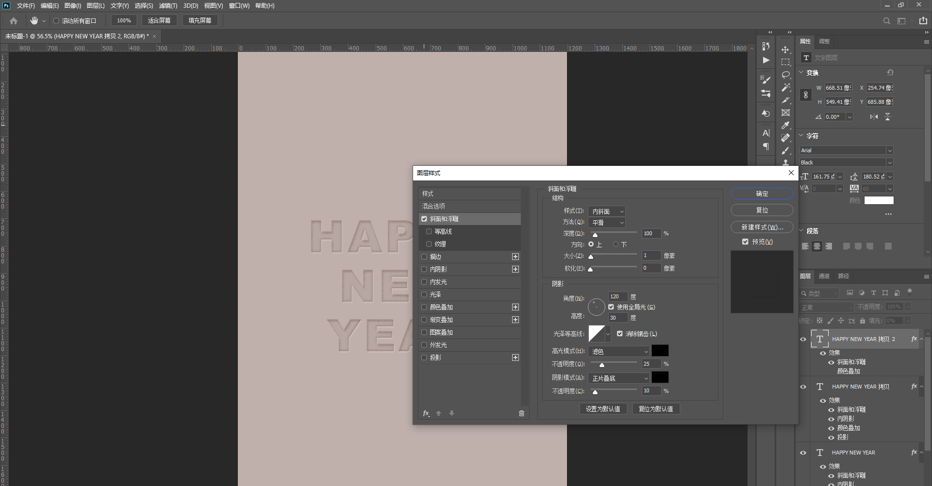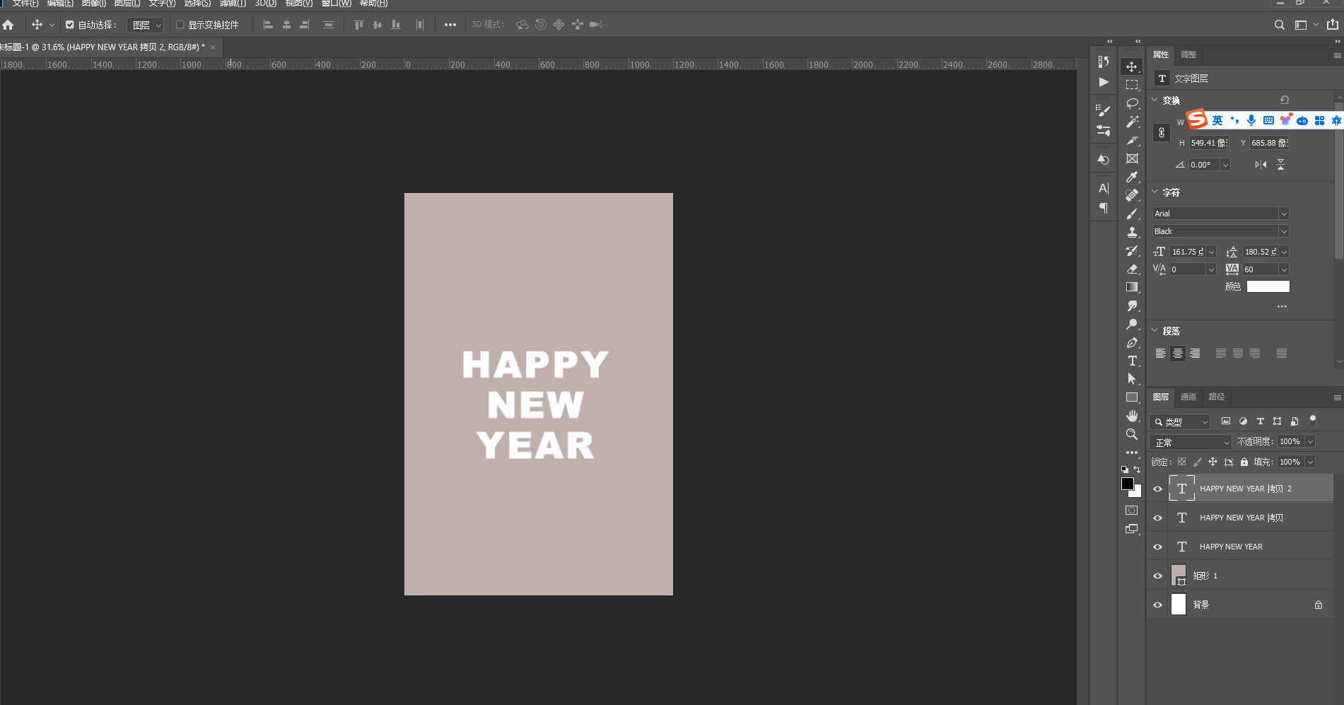2、选中文字图层【ctrl+j】复制两个,一共得到三个文字图层,将三个文字图层由下至上分别称为“文字1”~“文字3”