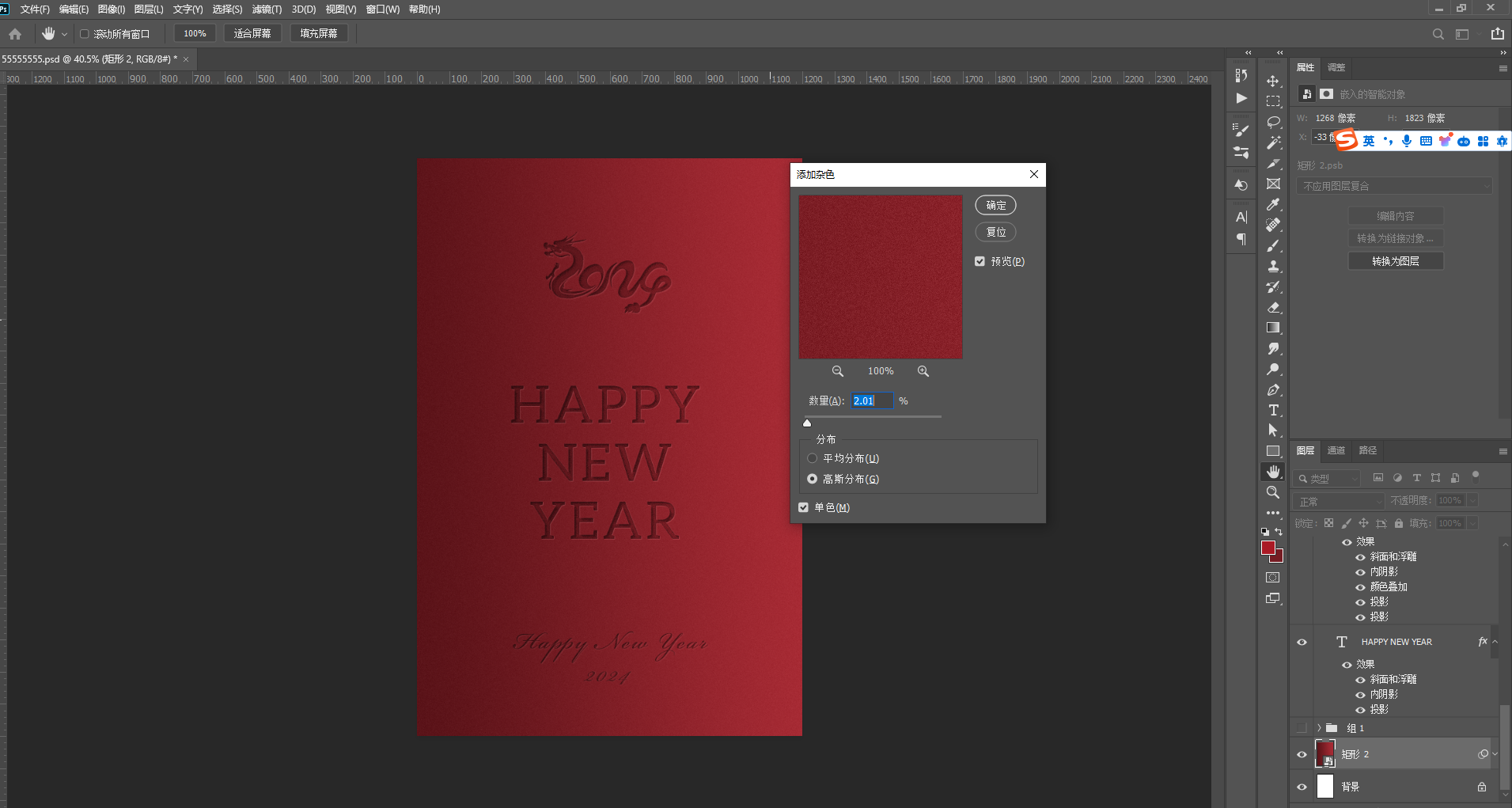 10、这时候为了让背景看起来更加真实像水泥墙面效果,更加有质感,背景图层执行了【滤镜】【杂色】【添加杂色】增加纹理