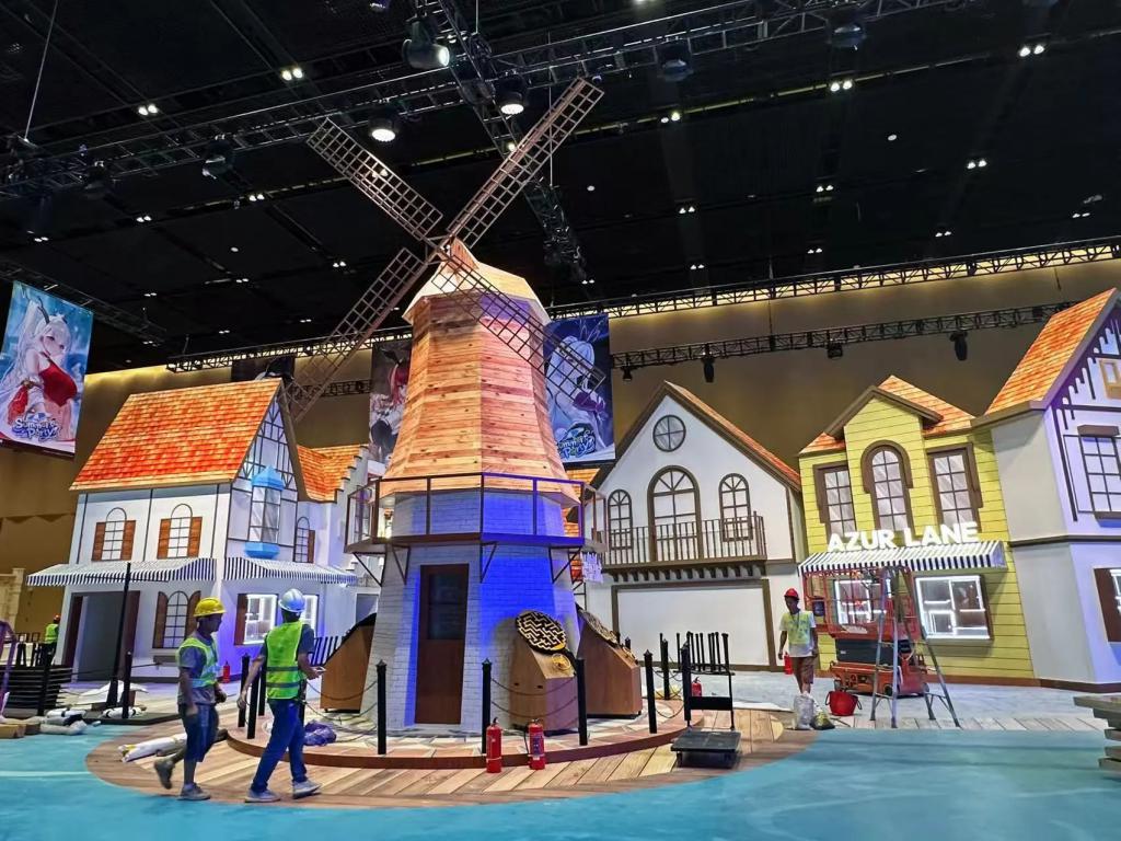 这些布景也并不只是给大家看看而已,在这些场景中,游戏官方也布置了各种小游戏、自动售货机和周边兑换点等等,一些比较特别的布景,则会安排 Coser 驻扎——可以想象,这里将成为玩家们争相摄影的主战场。