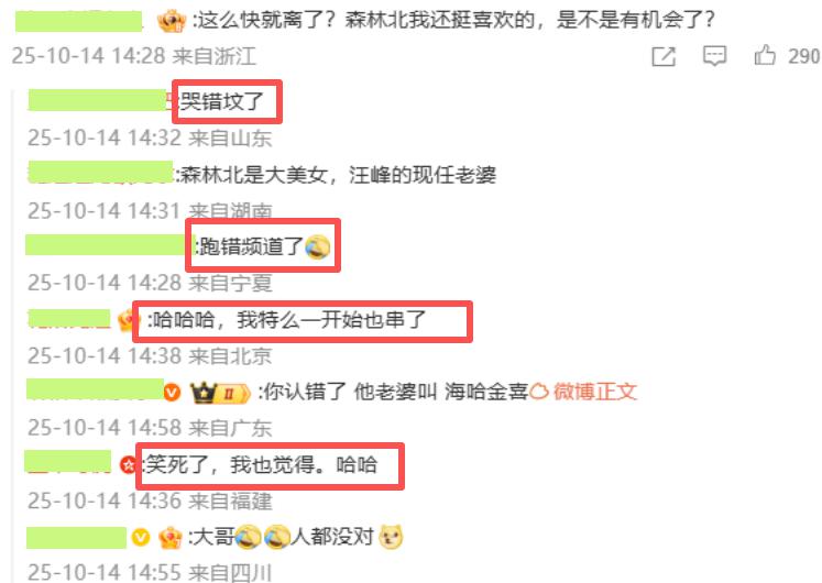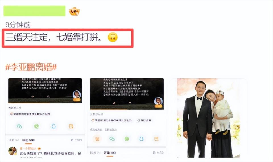 李亚鹏的官宣离婚评论区中,热评第一就是跑错频道的网友: