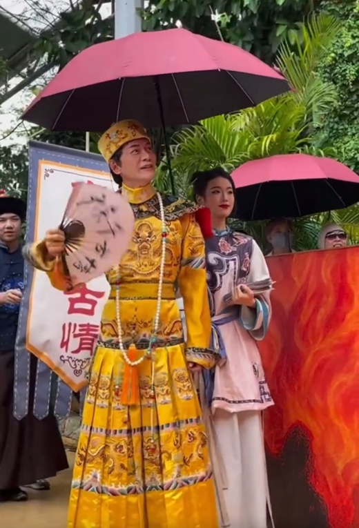 当日,江华身着古装,分别以经典角色“雍正”(《九五至尊》)和“唐僧”(TVB版《西游记》)的形象出现在景区。那熟悉的装扮一亮相,就仿佛把时光拉回到了那些经典的影视作品中,周围的游客瞬间沸腾起来。