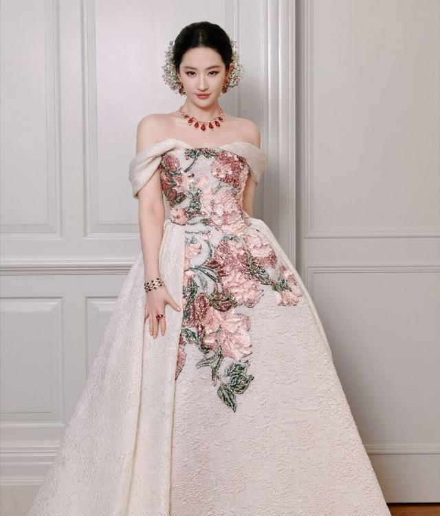 刘亦菲此次亮相VOGUE盛典,身穿Elie Saab 2025秋冬高定礼服,裙摆上缝制了3000朵手工真花,耗时6800小时制作。