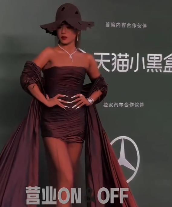 反观吉克隽逸,此次以一袭黑色紧身裙亮相,搭配2斤重的金属配饰,气场全开。