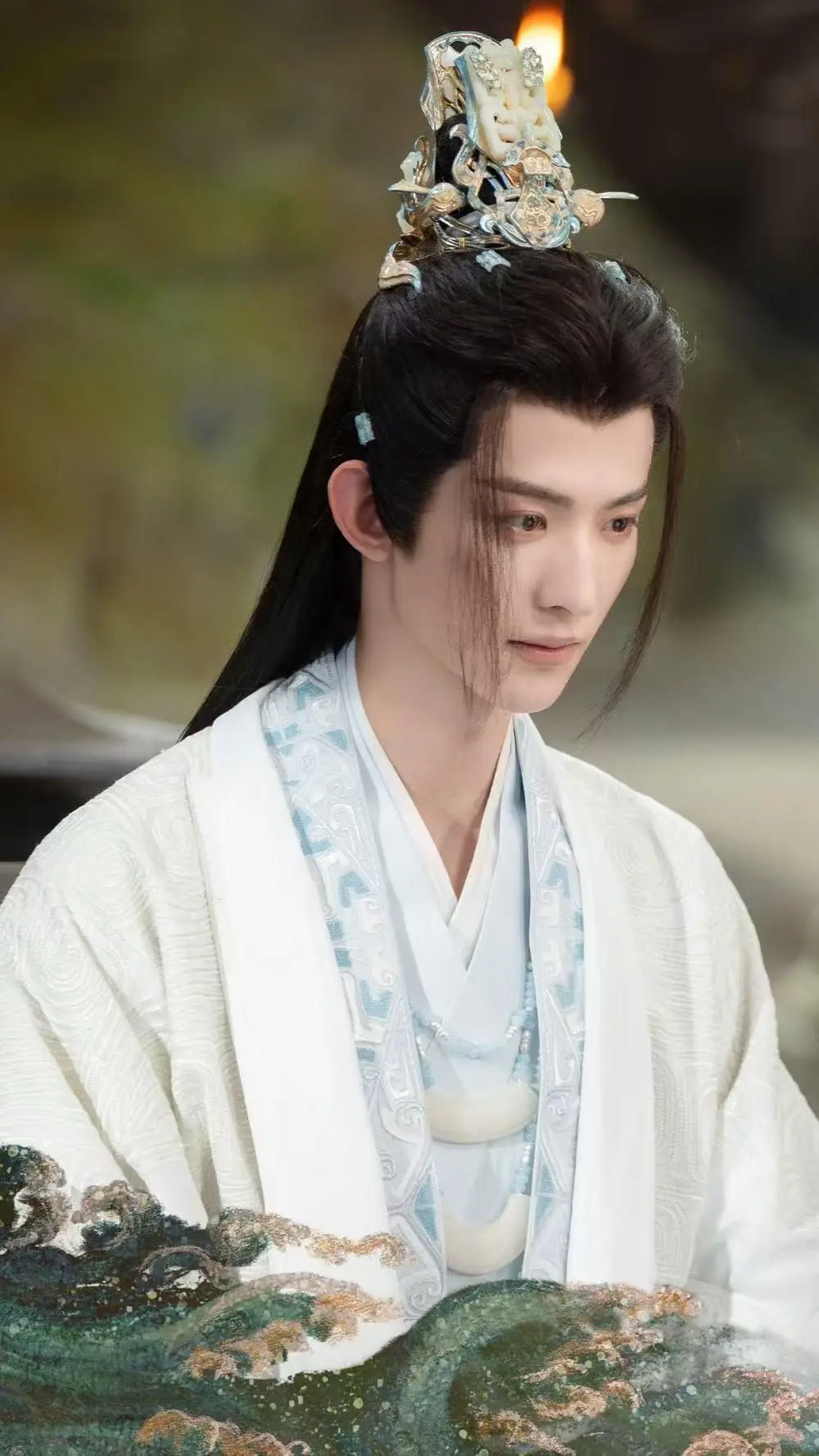 唐狐狸被世人视为“怪物”, 罗云熙一袭狐裘流苏长袍、银色玉龙发冠等造型,真是天选“绝色古装男神”。
