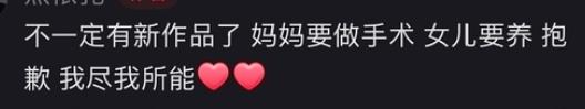 原因,她也做出了解释。母亲要做手术,还要照看女儿,所以只能抱歉了,不一定会有新作品。