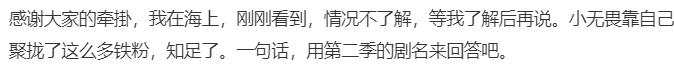 所以,不仅是《无所畏惧》不再继续,她手里甚至还没任何新剧。