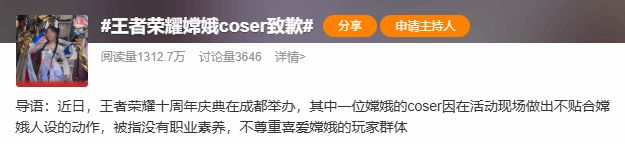 在《王者荣耀》十周年庆典园游会上,抖音博主“我不叫龙虾”因扮演嫦娥时的一系列行为引发争议。她在大合照环节做出跳“来财舞”、吐舌头、大幅度扭动身体等动作,被批评严重违背嫦娥“清冷孤寂”的角色设定,有部分玩家直言这些行为“擦边”。