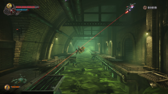 在开始玩《暗影火炬城》后,又可以找到那种在巨大地图中探索的熟悉感,旧城区、霞飞路、发电站、下水道等区域不仅迂回曲折设计精巧,也各自有一定的出入口相连,各种不可达到区域在解锁了新技能或者新武器之后也能到达,探索成就感满满,对于想要完成100%地图完成度的强迫症玩家来说,踏遍火炬城的每一个区域也是一个不小的挑战。当然,为了省去不必要的跑图时间,《暗影火炬城》也设置了类似传送门一样的传送点,方便玩家在不同区域之间快速切换。