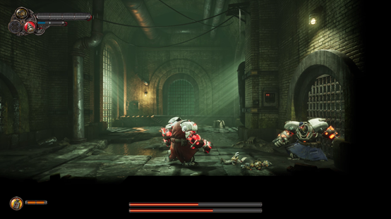 和规模庞大的场景相比,游戏出现的敌人种类并不多,敌兵和BOSS的重复度有些高,但是敌人的攻击力和>AI却非常高,比如一个远程攻击敌兵+一个近战盾兵+一个近战速度兵,再配以平台跳跃的机关陷阱,一套组合下来分分钟让你Game Over。与之相对的是BOSS战反倒是没有太多难度,只要掌握了攻击的节奏和套路,BOSS战的难度比某些场景下的杂兵都要简单不少,上一次让人有这种感受的还是《忍者龙剑传》吧。