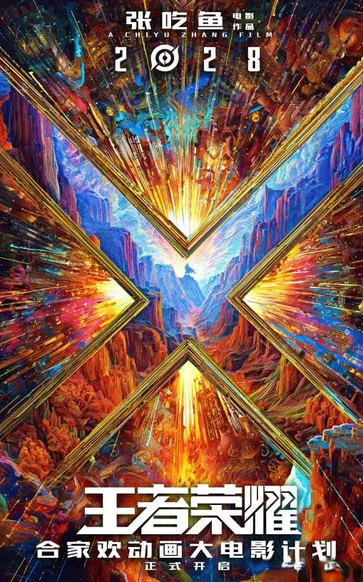 从官方释出的概念海报来看,主视觉中心是一个极具张力的“X”符号,寓意“无限可能”,这个符号既象征着《王者荣耀》十周年的重要节点,也代表着这场电影计划将为玩家带来一次前所未有的世界观拓展,海报中融合了峡谷的能量光流、神秘的英雄轮廓与奇幻的色彩基调,暗示电影将不再局限于游戏的对战场景,而是深入挖掘角色背景与世界观体系,构建一个真正属于“王者宇宙”的宏大叙事。