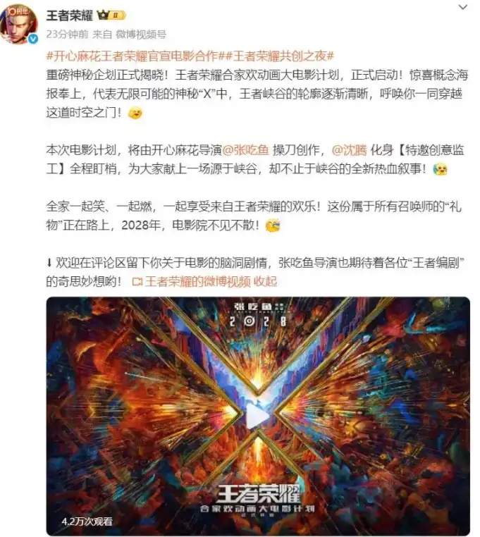 本次电影由《王者荣耀》原班创意团队核心成员张吃鱼担任导演兼编剧,沈腾则将以“特邀创意监工”的身份加盟,与开心麻花团队联手打造这部融合热血、冒险与欢乐的合家欢动画巨制,消息一出,立即引发了无数玩家与影迷的热议。
