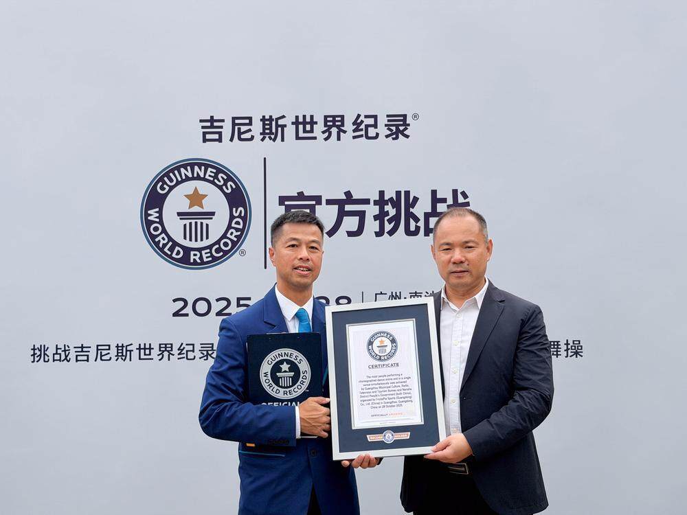 10月28日上午,广州南沙天后宫举行“羽你同行·百城迎全运”万人羽毛球舞蹈吉尼斯世界纪录挑战活动。活动现场,奥运冠军、世界冠军通过多种形式助阵,以体育联动文旅的方式,展现广州城市魅力与全民健身热情。经吉尼斯官方确认,本次活动成功创造“全球最大规模的羽毛球舞蹈”世界纪录。