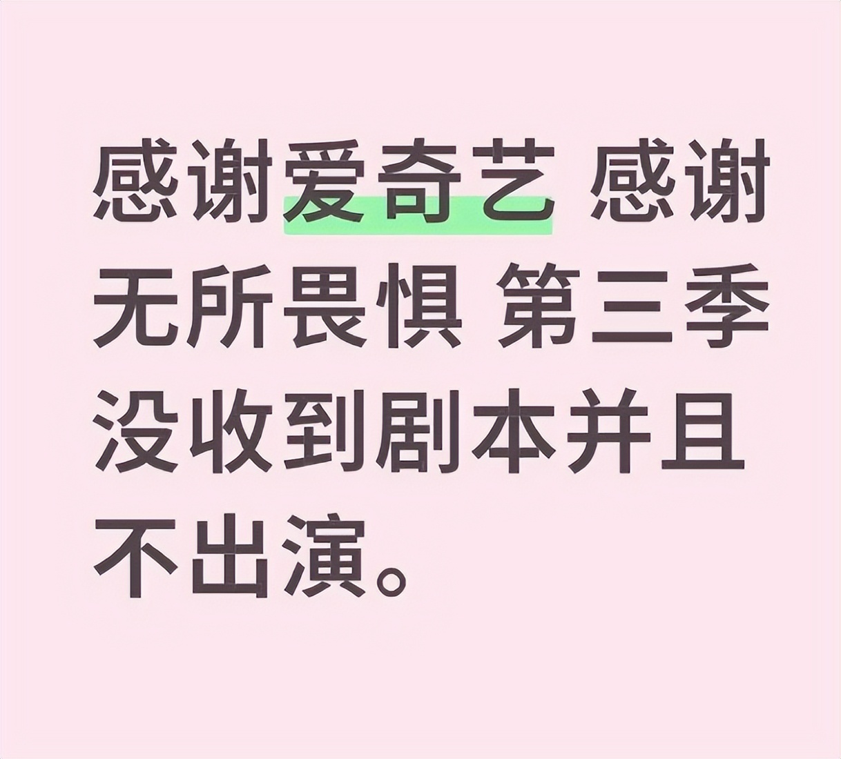 近日,热依扎公开回应,自己不再出演电视剧《无所畏惧》第三季,表示没有收到剧本,也不打算再出演。