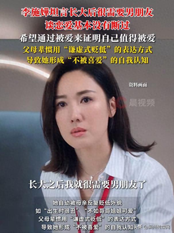 10月29日,李施嬅通过综艺《再见爱人5》,坦白自己因原生家庭缺爱而长期陷入,“通过恋爱证明自我价值”。