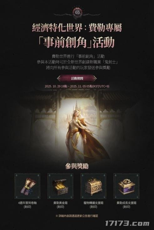 在活动期间内,所有于“费勒”世界成功进行事前创角的玩家,都将获得官方发放的专属奖励,具体内容将在后续公告中详细说明。